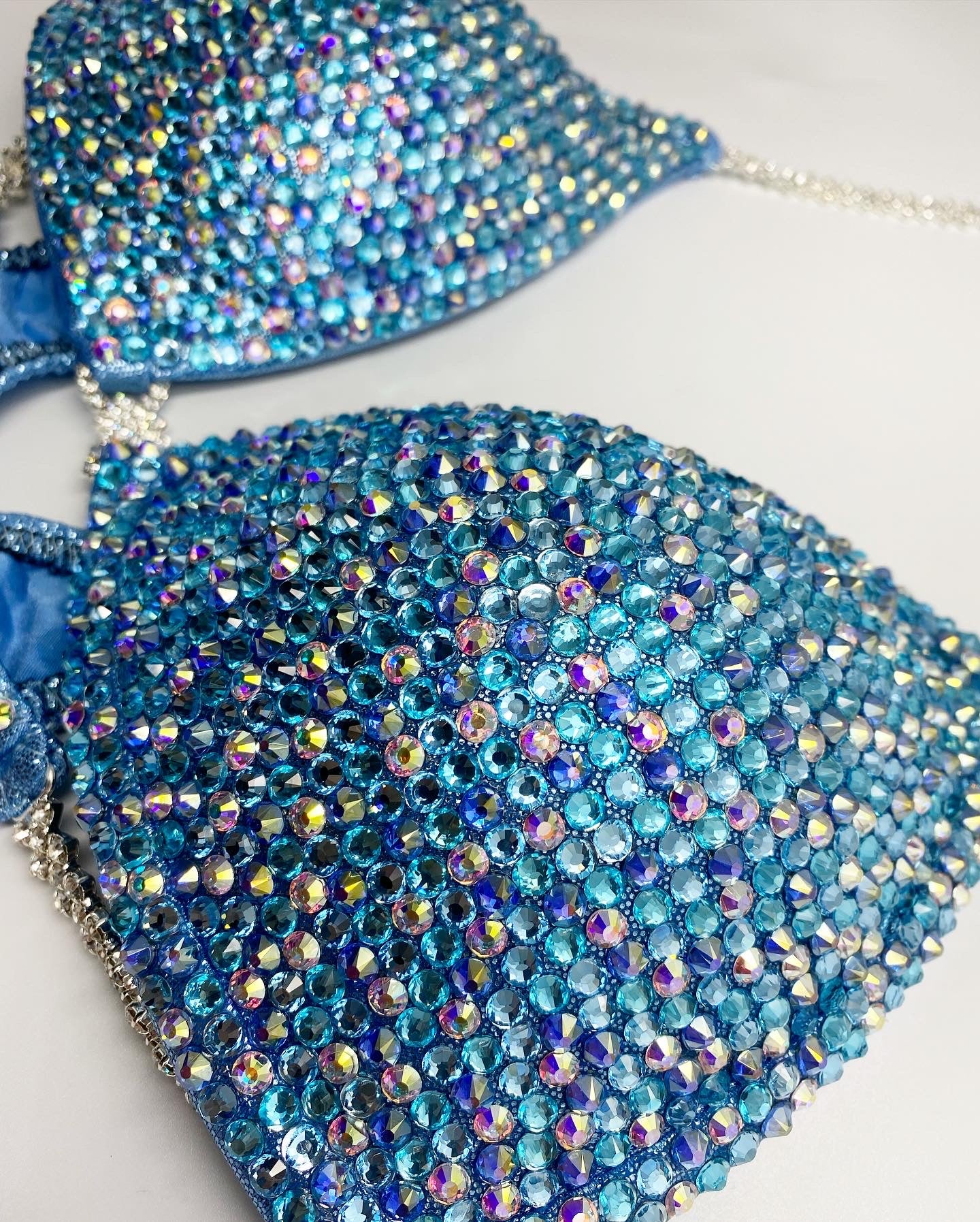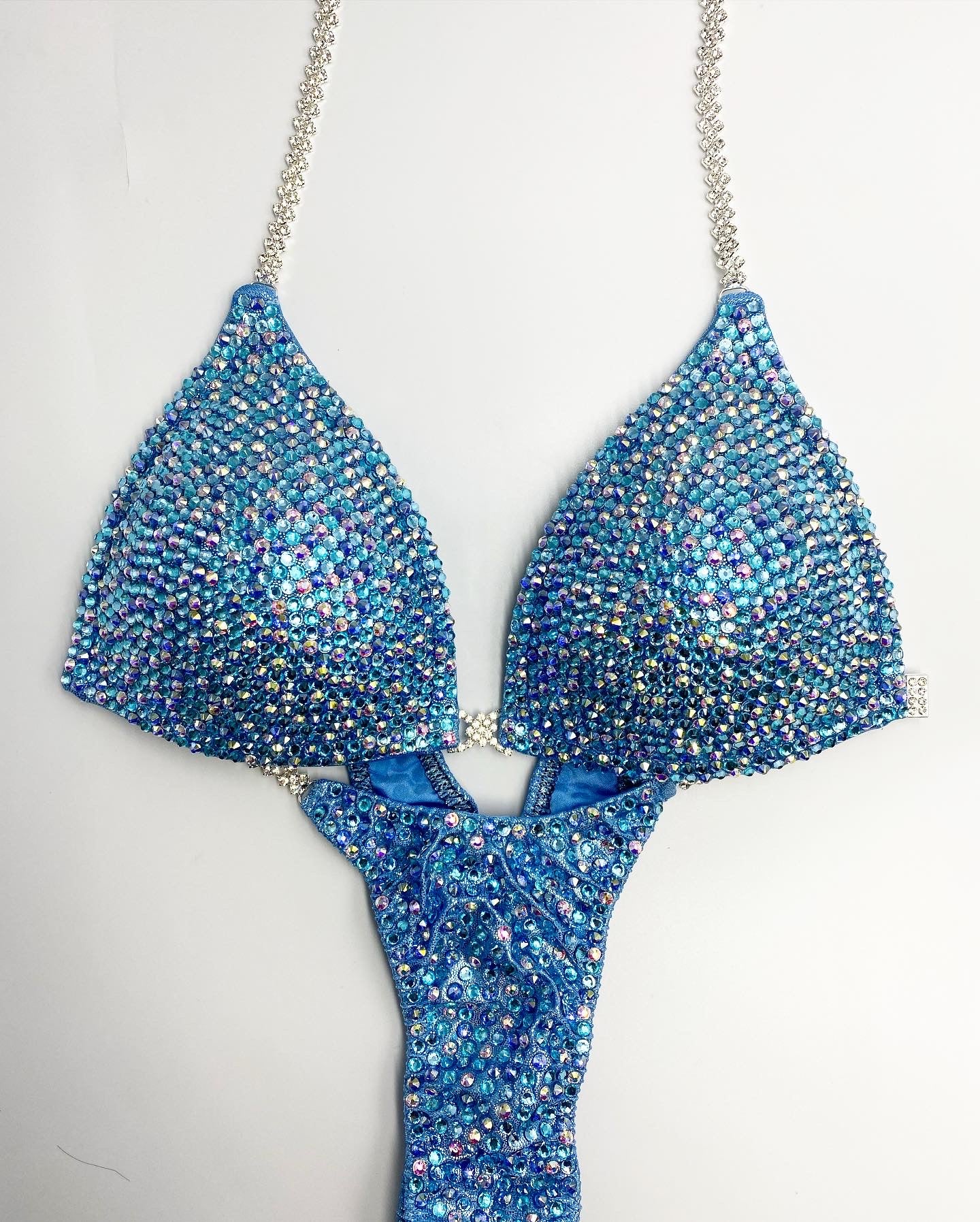 Stunning ice blue bikini paired with our slanted strap connectors and diamond middle connector.
