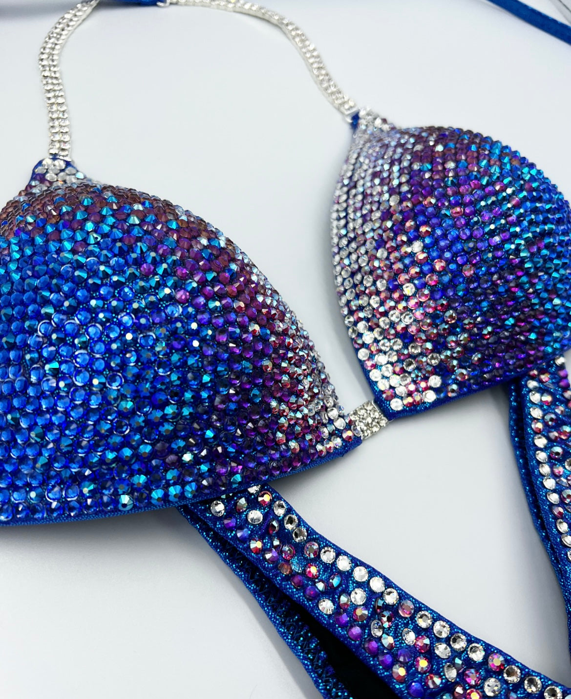 Take to stage in this STUNNING Ombre suit, with a gorgeous mix of crystal brands (Serenity, Preciosa & Czech glass) and colours making this so unique in colour. A blend of blues, purples and fuchsias make this suit stand out!