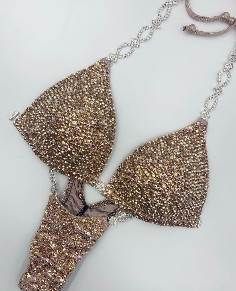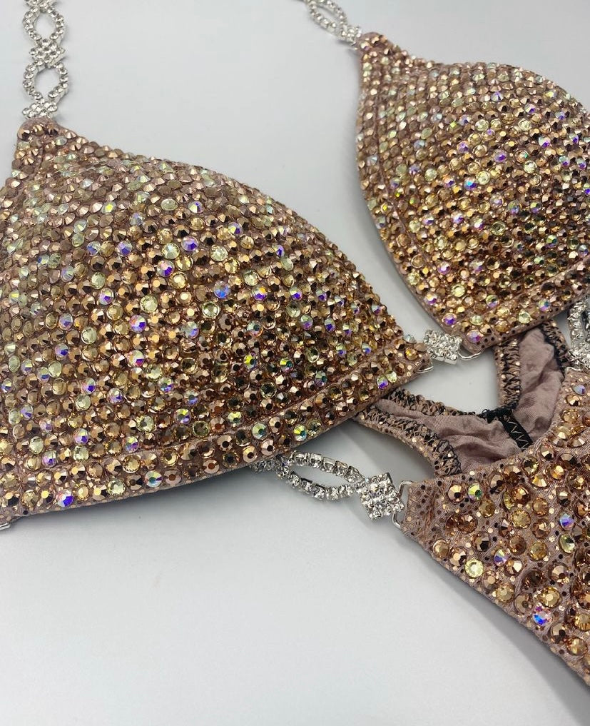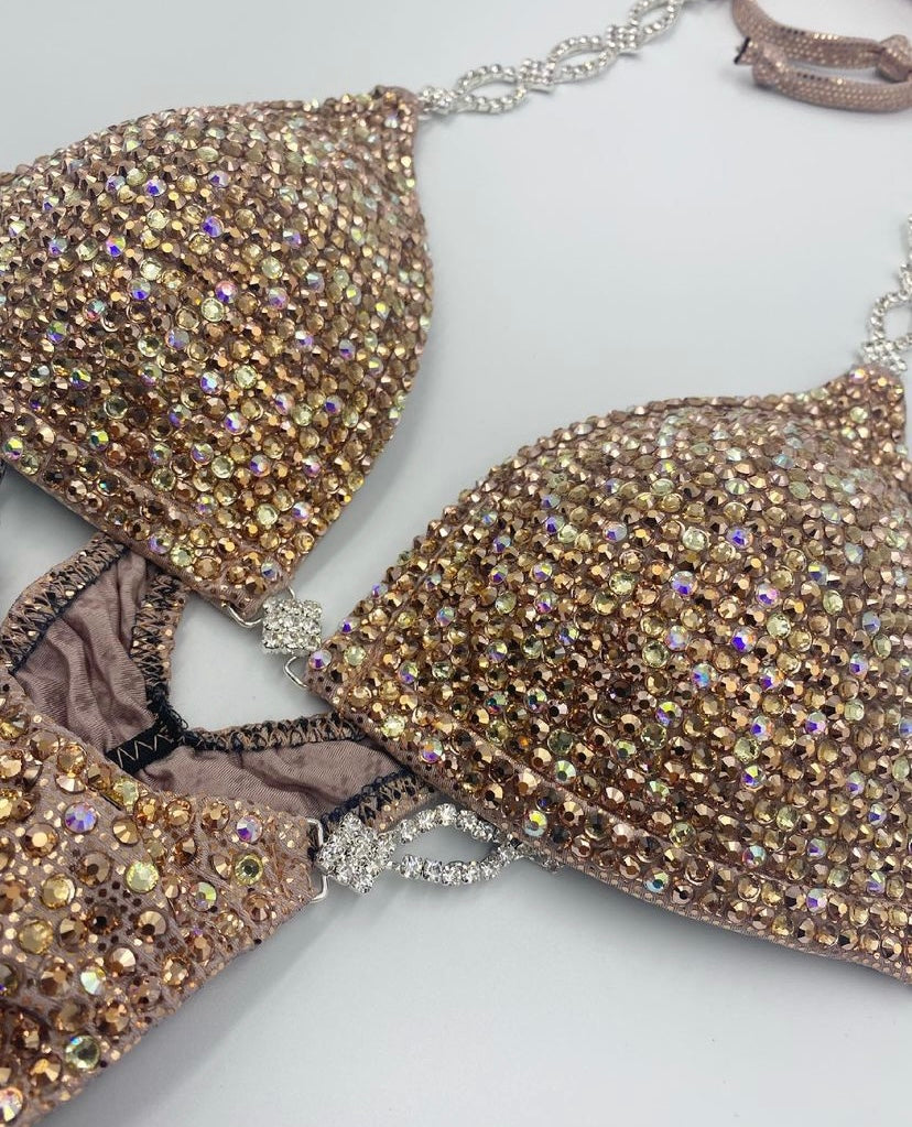 A beautiful copper zitto fabric base with a mix of bronze, yellow and AB Preciosa crystals(can also be down with CZEch glass or a mix of the two) with our diamond strap connectors and a diamond centre connector.